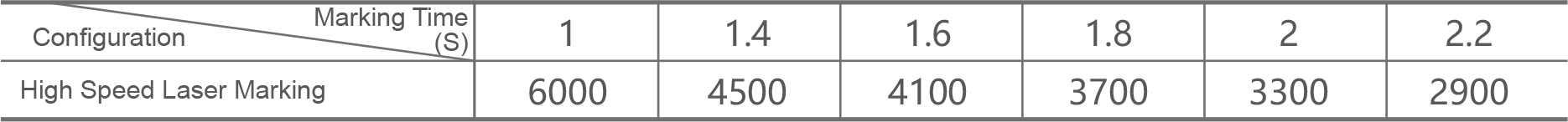 Он использует уникальную патентованную технологию лазерной маркировки. Производительность достигает 6000 шт/час, когда один лазер оснащен временем маркировки не более 0,6 секунды для одной стороны или два лазера оснащены временем маркировки не более 1,2 секунды для одной стороны.
